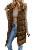 Brown Hooded Pocketed Quilted Long Vest Coat