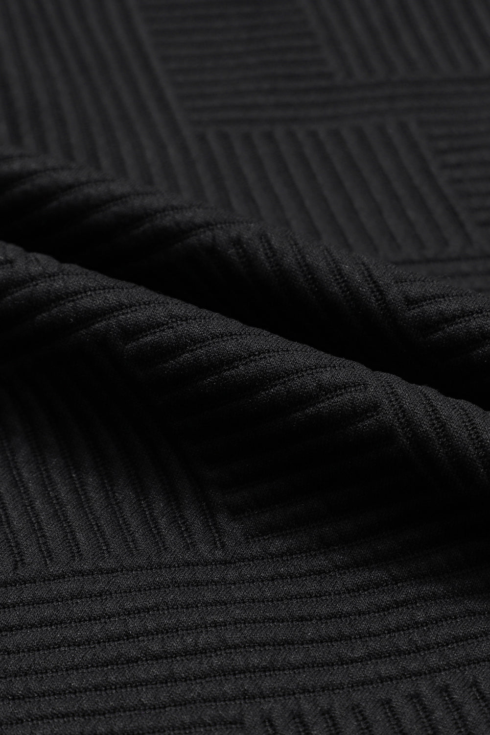 Black Textured Long Sleeve Top & Drawstring Shorts Set